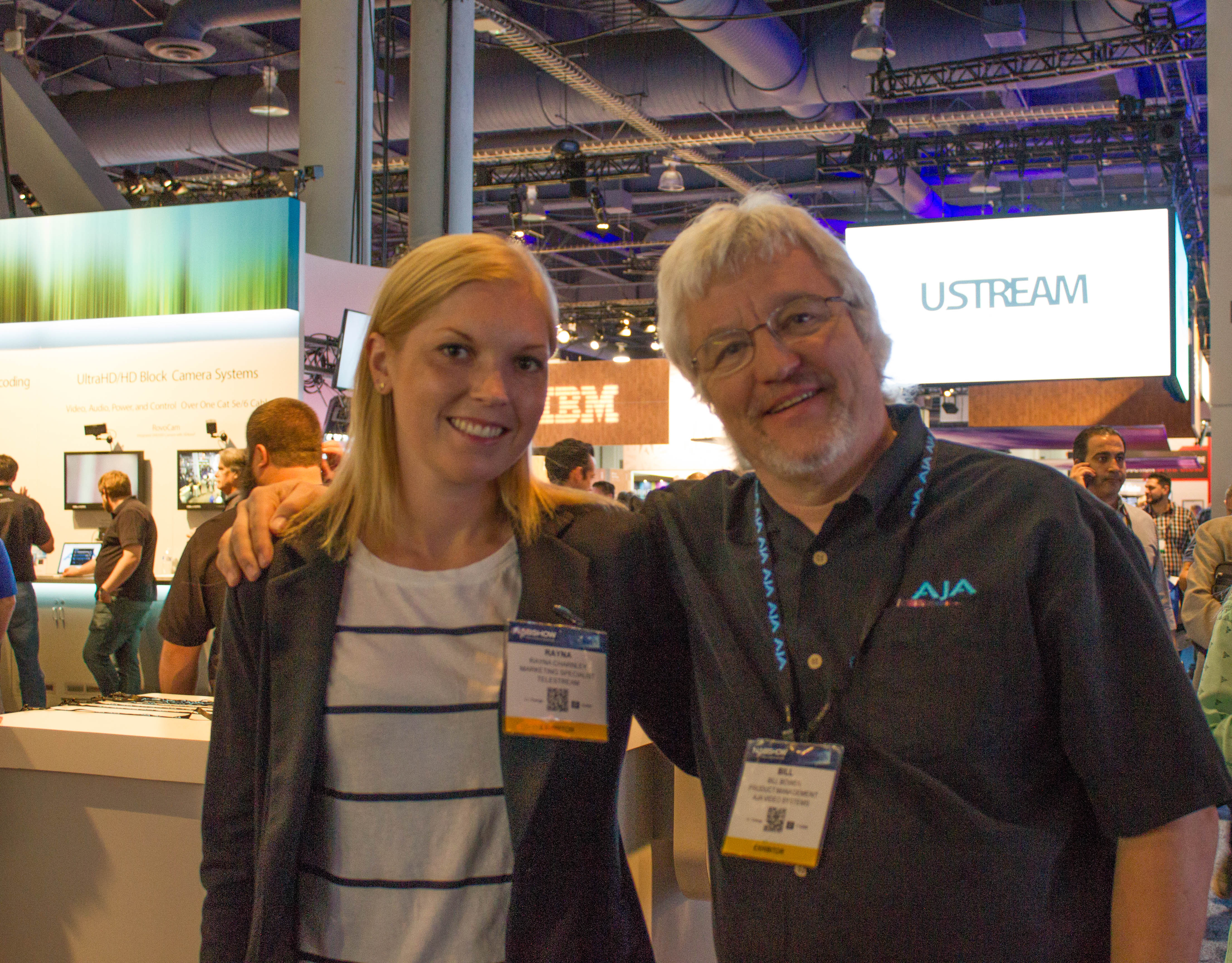 Telestream employee Rayna chatting with a friend from AJA